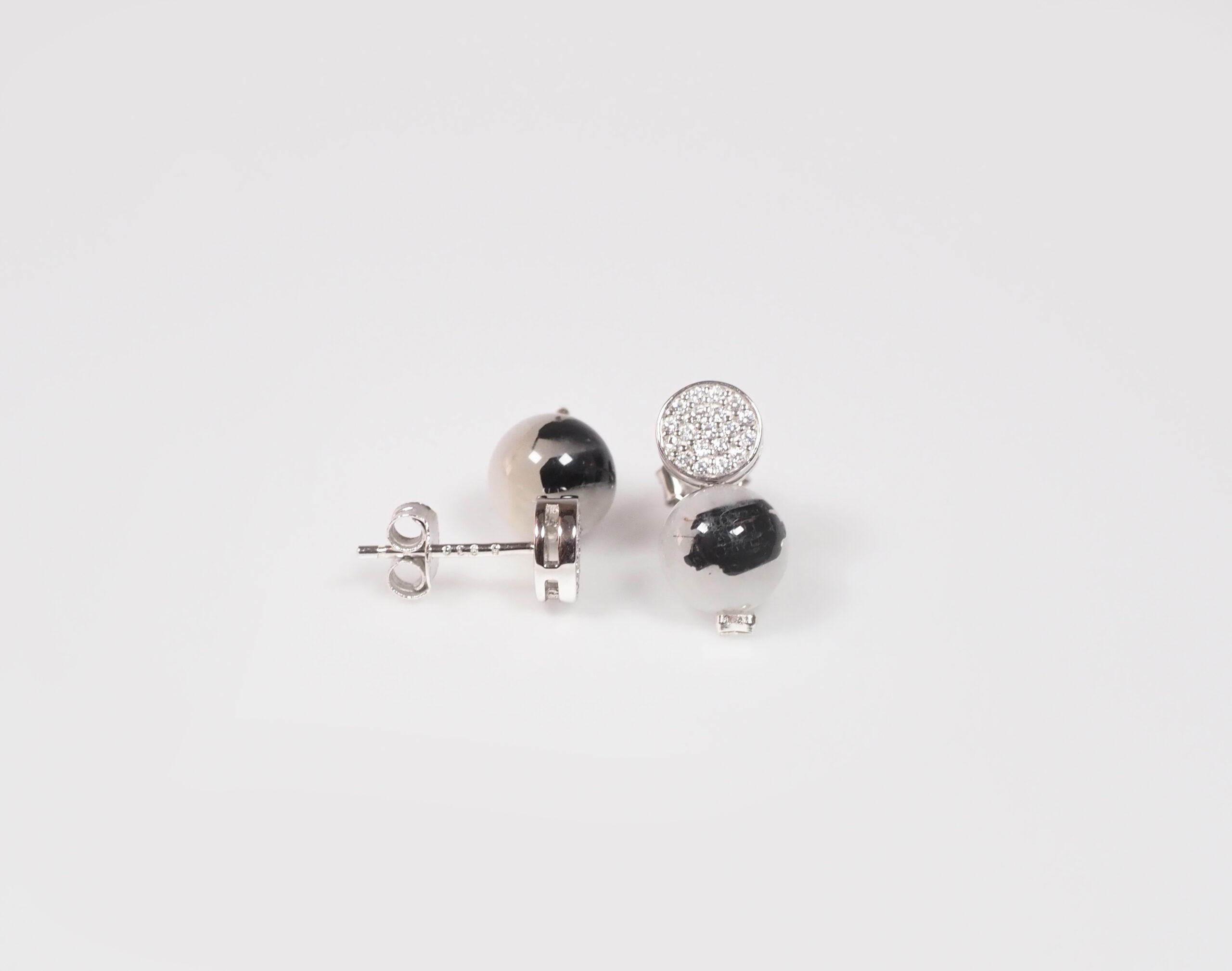 Pendientes Tu y Yo de Plata rodiada, zirconitas & Cuarzo Rutilado.